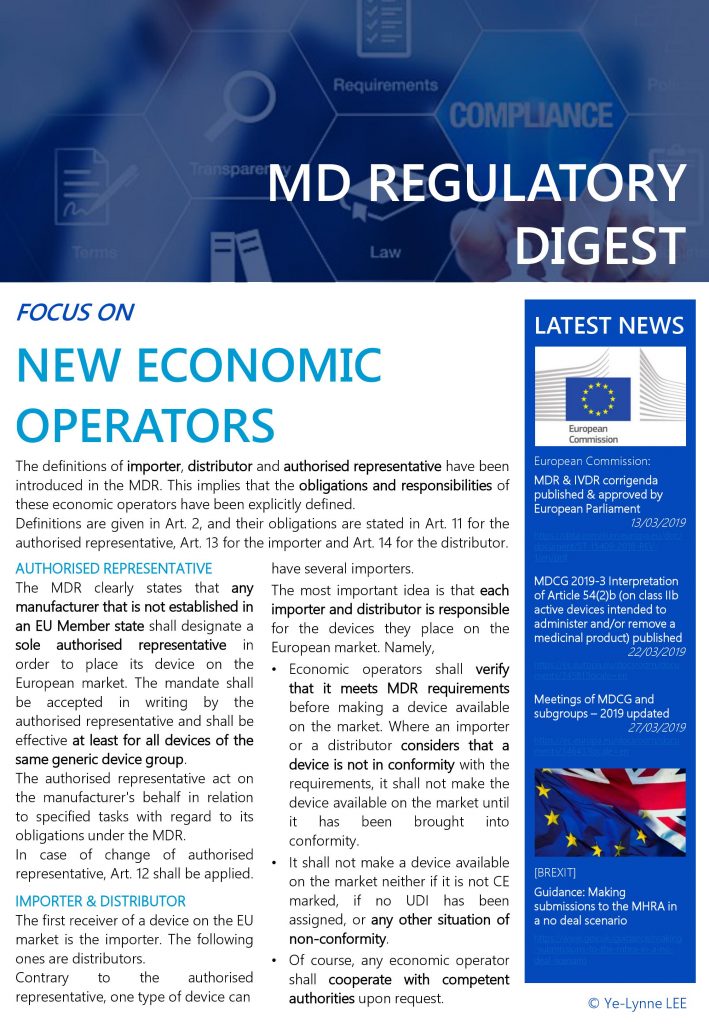 This week my Digest is about new economic operators, focused on importer, distributor and authorized representative.